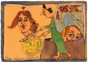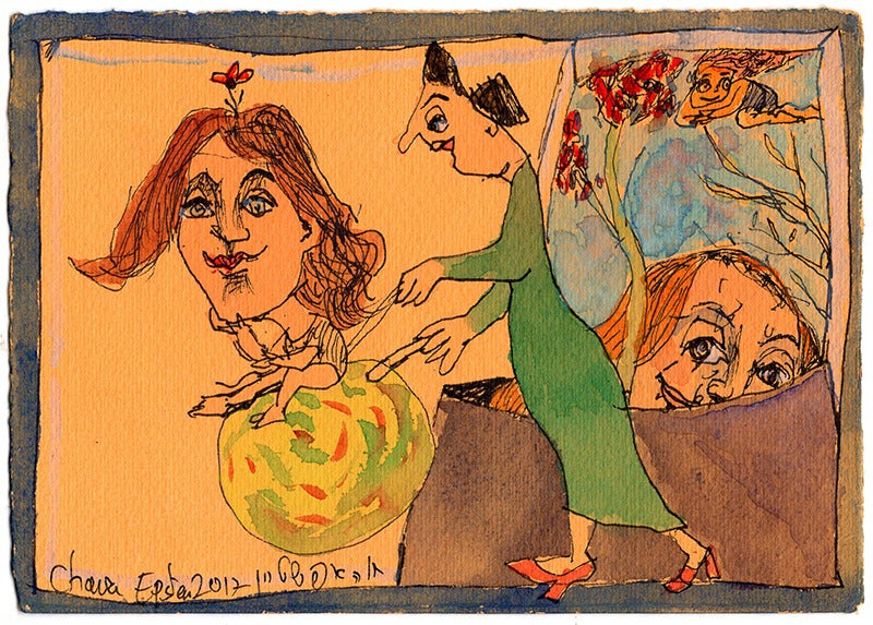 חוה אפשטיין | Chava Epstein, Aquarelle on yellow paper, 12.5 by 17.5 cm