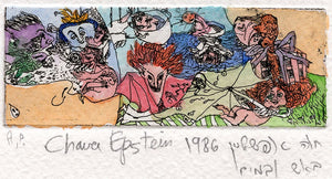 חוה אפשטיין | Chava Epstein, Etching and aquarelle, 4 by 11 cm, In fire and water, from the quartet "The Heart, Its Demons and Angels"
