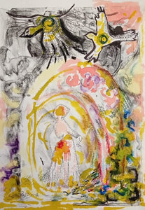 אורית בת צבי הרפז  |  Orit Bat Zvi Harpaz, Mixed technique: monotype, pilot pen, colored ink, soluble oil pastel. 29 by 20 cm, including frame: 49 by 39 cm